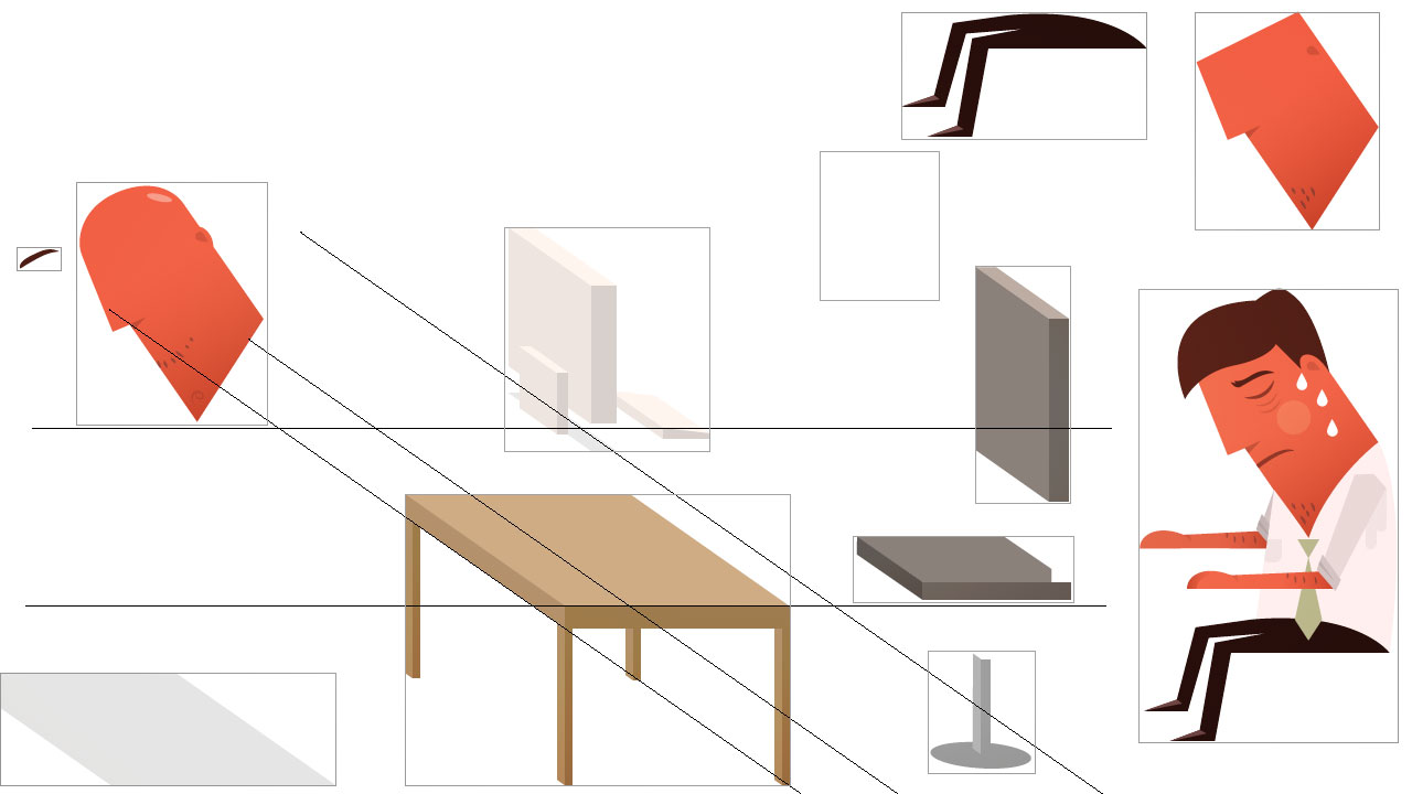 We created the office worker characters to try and convey the exhausting heat of a sun trapped office.